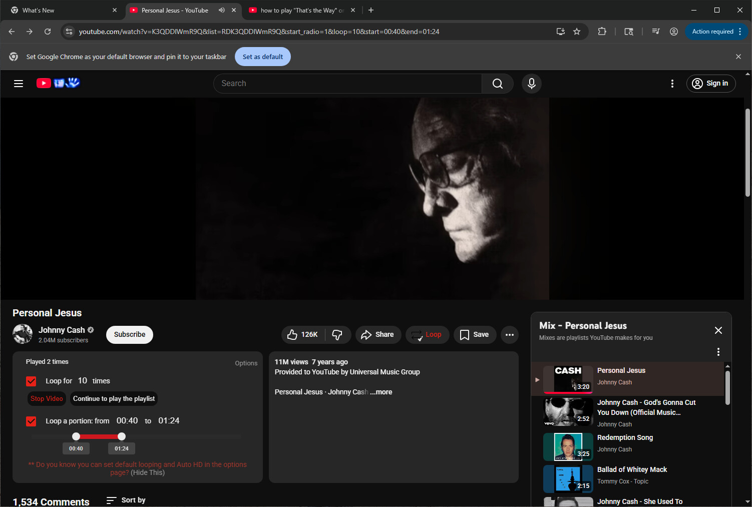 I like to loop passages from YouTube performances when learning them. Sometimes it’s just to hear, sometimes it’s to watch the fingering, or both.