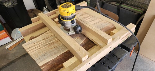 Iām having a bit of a router bit mini-crisis right now, too. Not sure how I missed it, but the bearing flush trim bit I got to trim the body to the template is a 1/2" shank and wonāt fit the trim router I bought myself (that one has a 1/4" shank). The router I rented is supposed to have a collet for a 1/2" shank, but that part is missing. It only has its 1/4" collet. So sometime between today and Saturday Iām going to need to get in touch with the tool library to make sure I can rent a router that actually has a 1/2" collet. I think I should be able to cut out the instrument bodies to shape next week. I plan to have the templates rough cut this week and I can spend the time sanding them to their final shapes over the weekend while the epoxy in the cracks cures. So assuming it doesnāt take the epoxy a week to cure, Iāll be routing the guitar body shapes. They do have a couple router tables and one of those might make doing the perimeter shape cut a lot easier.