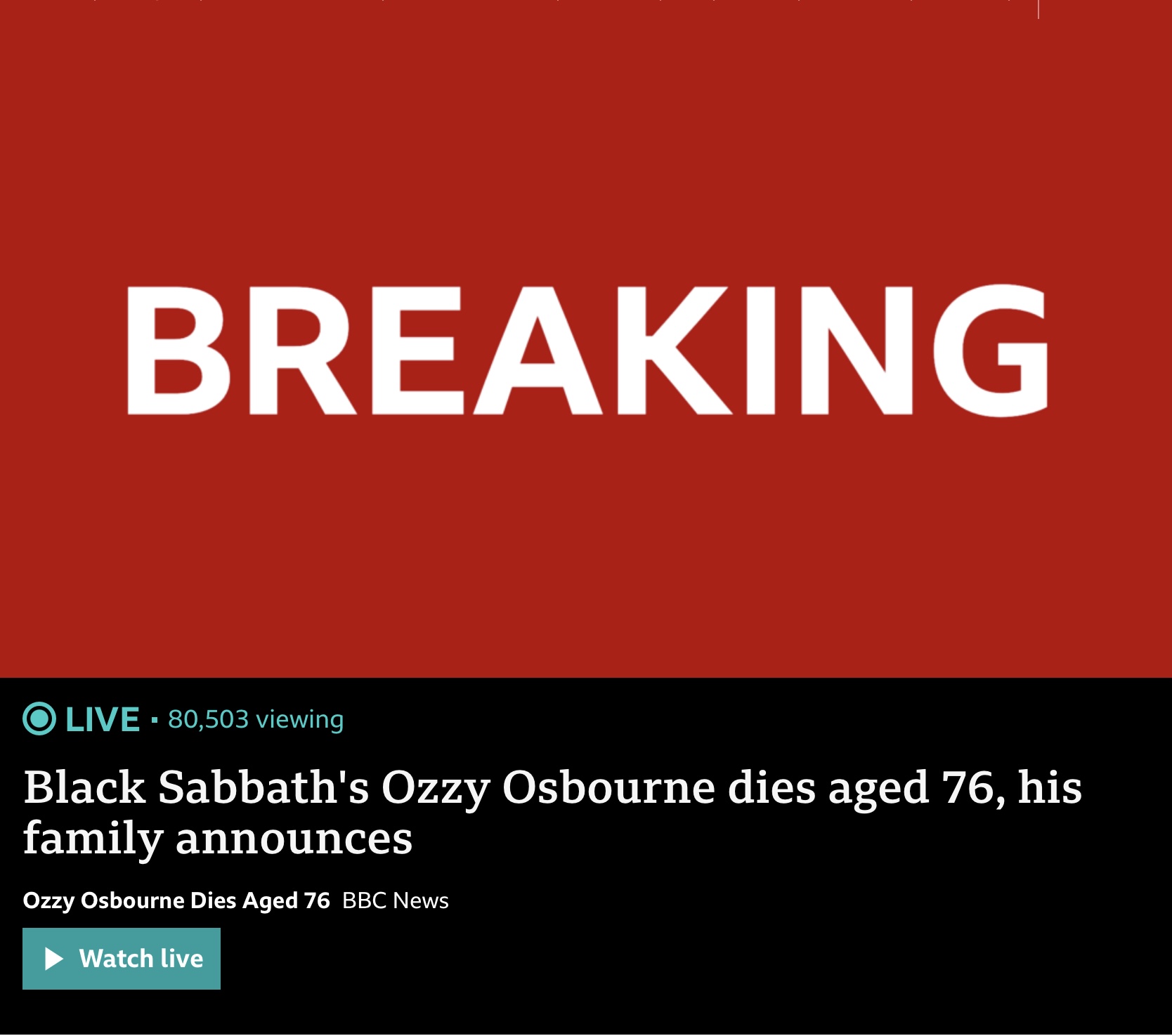 Ozzy is dead⦠A legend is gone. Somehow this really gets to me.