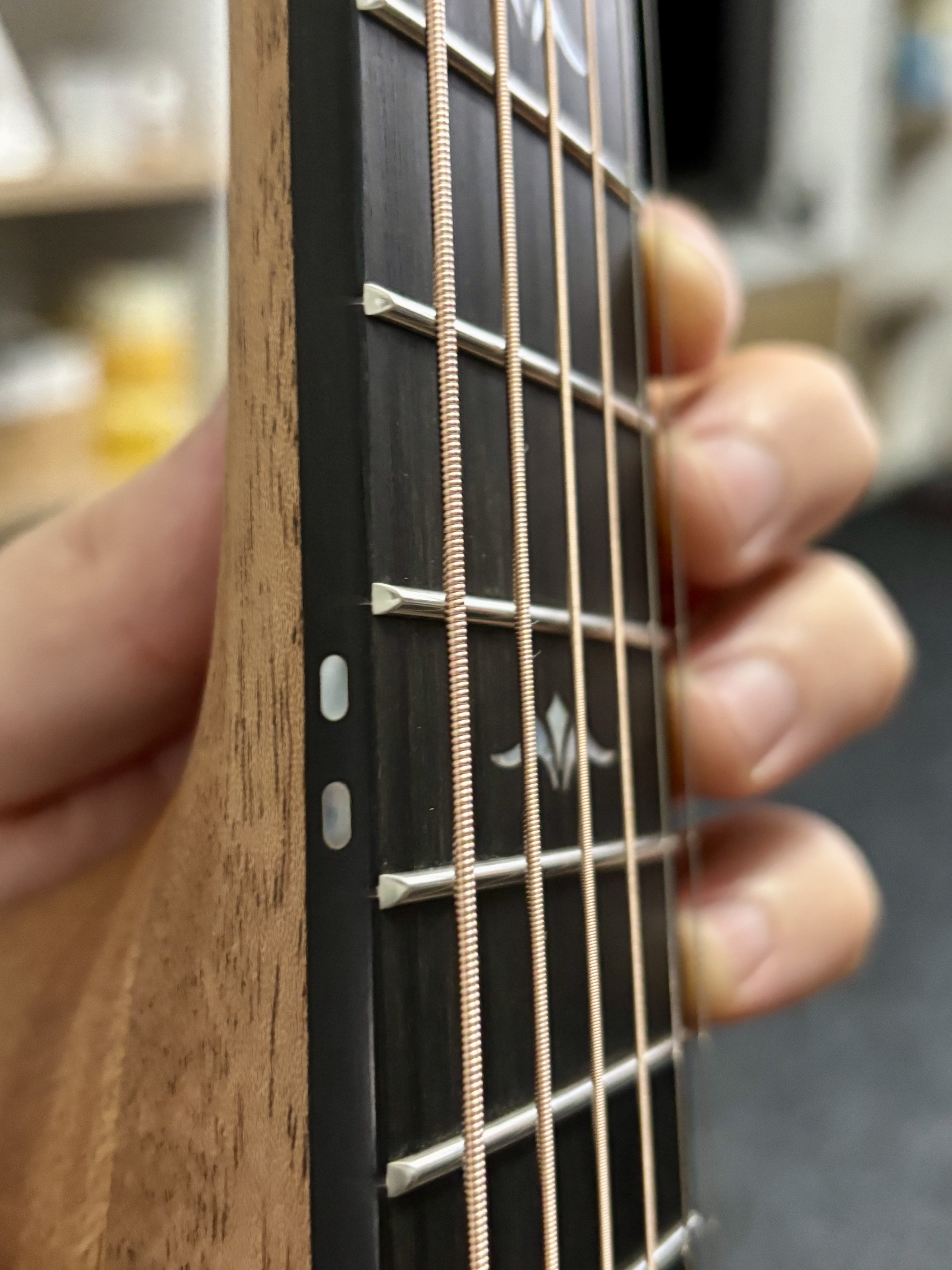 Do you mean fret number inlays on side of neck? Or you mean the wood structure lines?