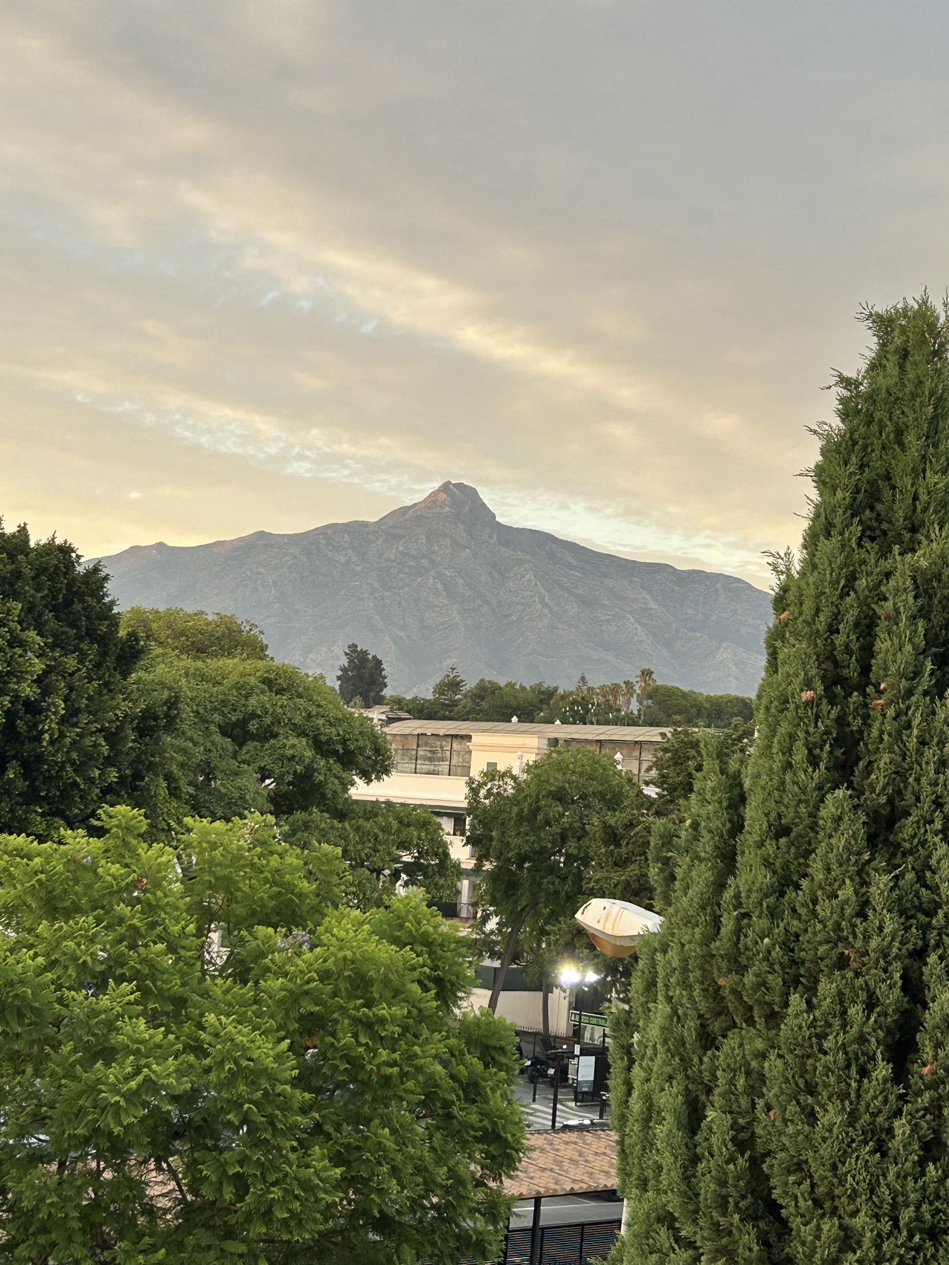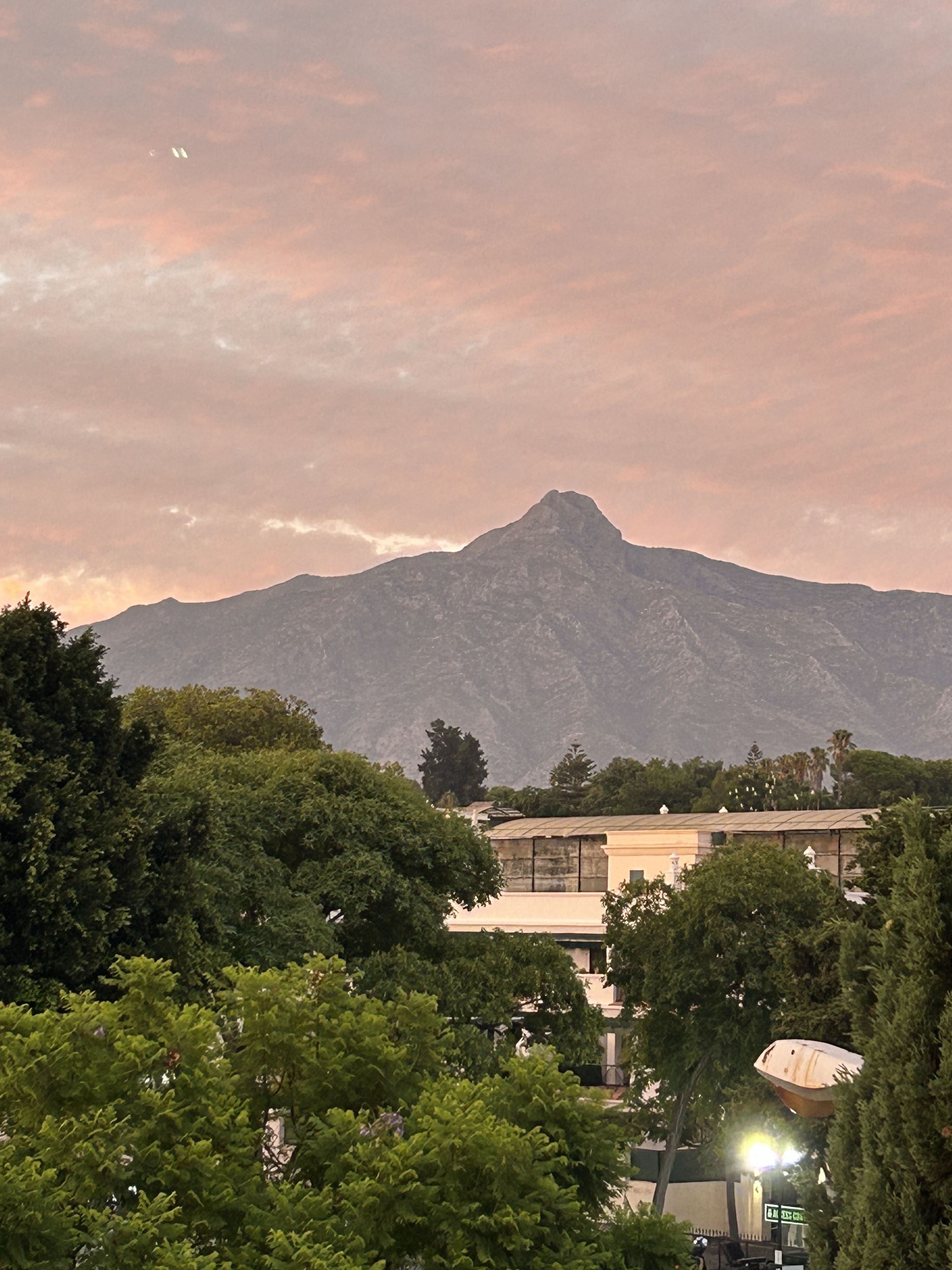 Here’s a photo of La Concha, Puerto Banus, Marbella, from our apartment this evening.