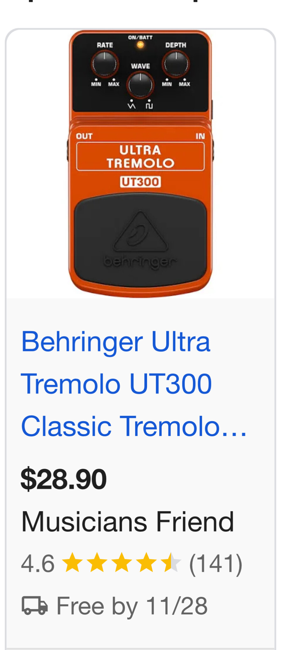 I think my local music store has 2 glass show cases full of pedals. Surely they’ll have a couple different trem pedals.
